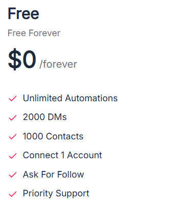 “Get started” in a few clicks; up to 1000 DMs/month free tier.